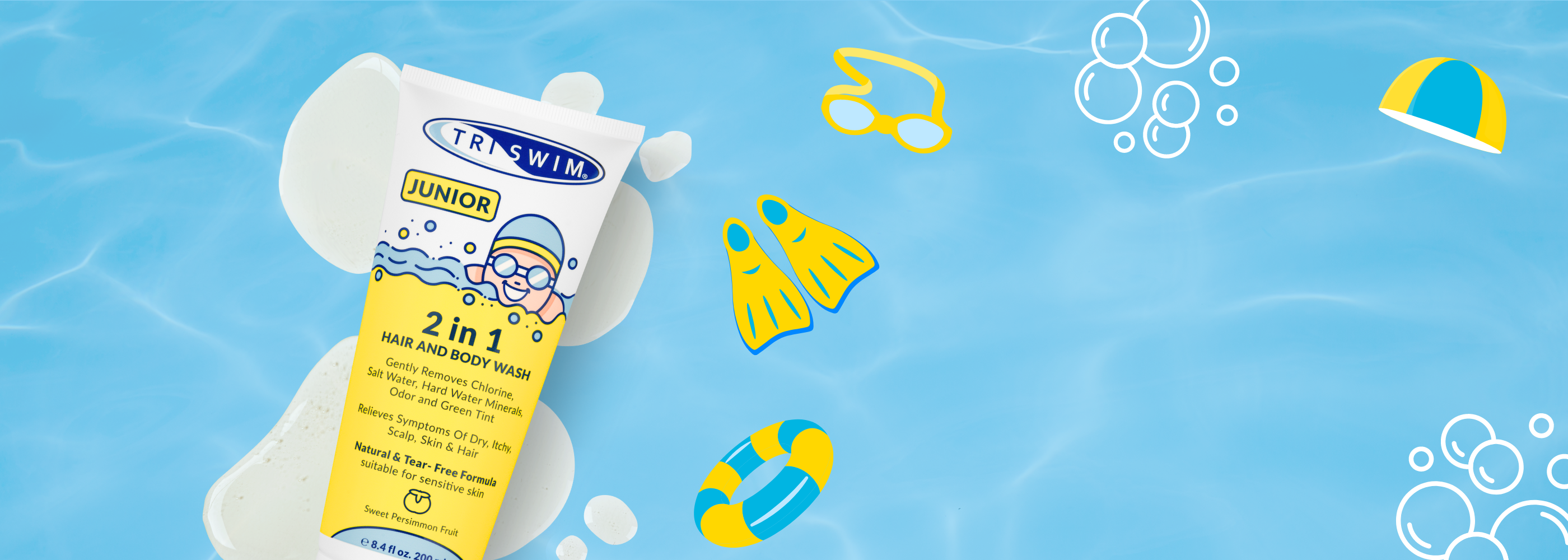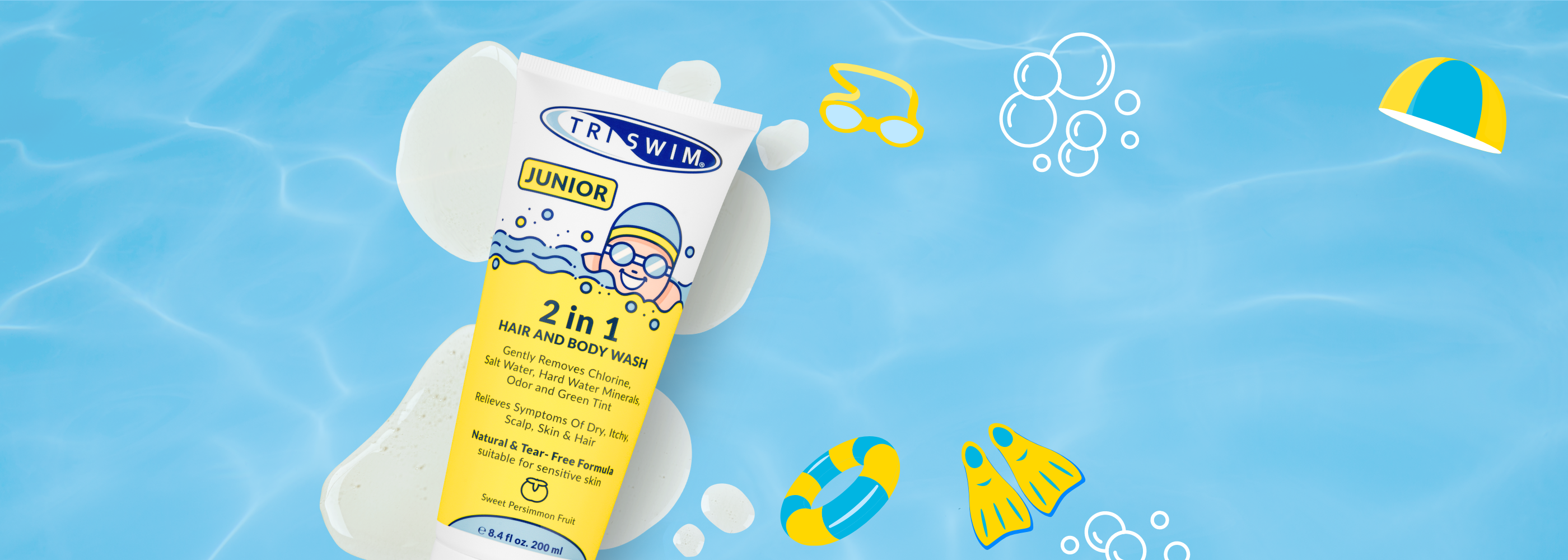 A revolution in after-swim protection of delicate kids' skin: The first natural & tear free anti-chlorine Body Wash for children removing pool chemicals from the body and hair is out now!
